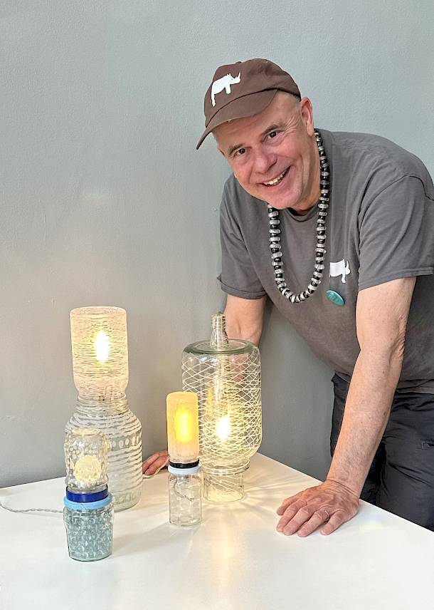De expositie GROEN GLAS toont duurzaam glaswerk van ‘vormvinder’ Arnout Visser. Met zijn nieuwsgierige en experimentele benadering van materiaal zoekt hij de grens op tussen glaskunst en design. Niets is te gek. Zo zie je een lamp van een lege whiskyfles en een fruitschaal van de glazen ruit van een wasmachine.